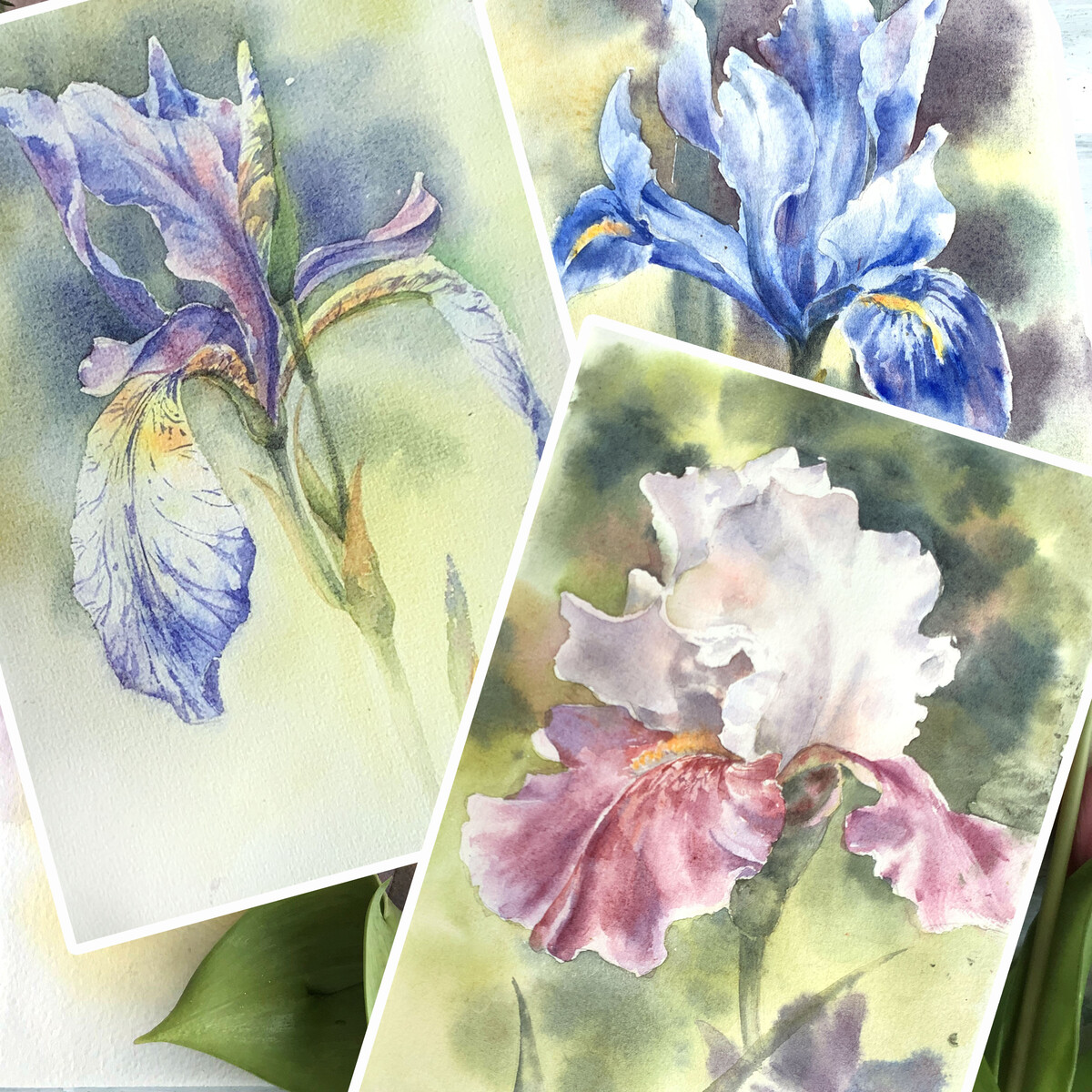 Акварельные этюды с красивыми переливами цвета и тонкими акцентами на лепестках! Украсим свой дом живописными ирисами!